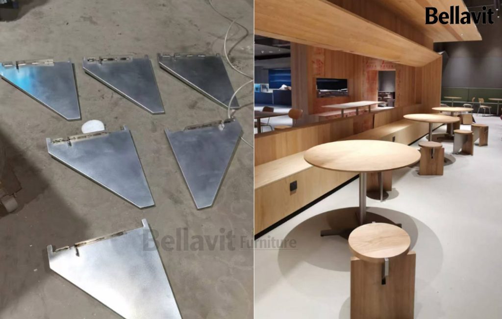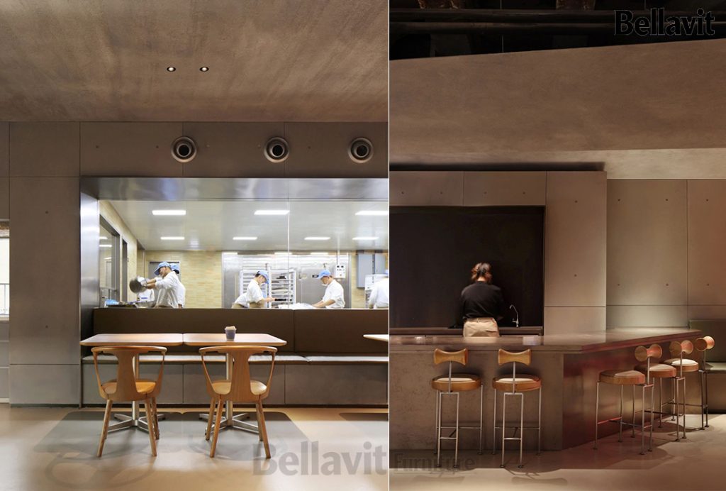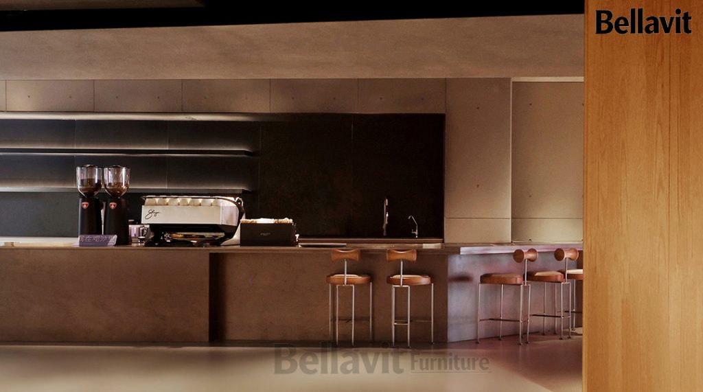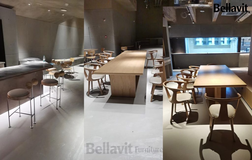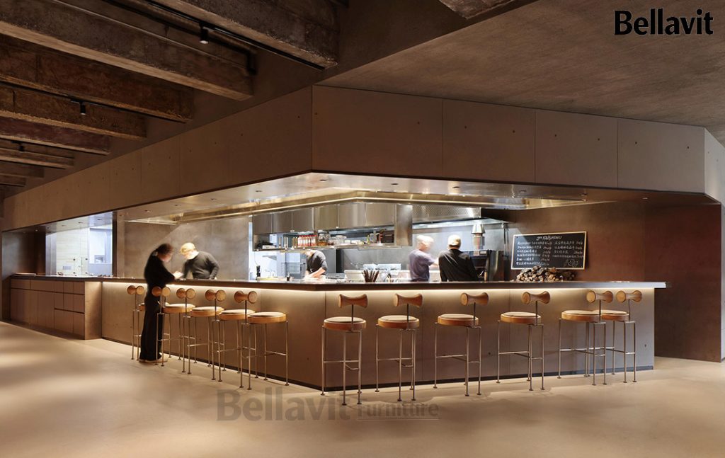 3. Bar Chair Optimization: The initial design featured a three-legged bar chair. Drawing on rich catering furniture experience, the Bellavit team predicted stability issues in high-frequency use and proposed an optimization scheme. By adjusting the support structure and stress distribution, the final bar chair not only boasts enhanced stability but also fits the overall style perfectly, winning high praise from clients and the design team;