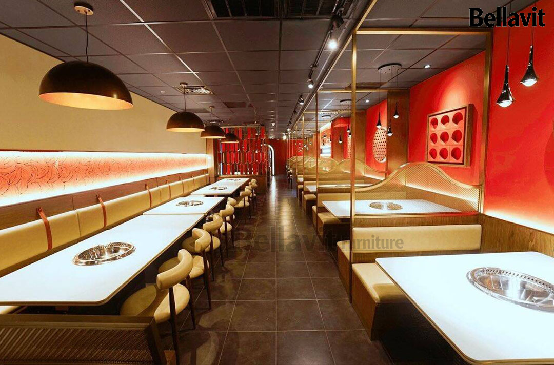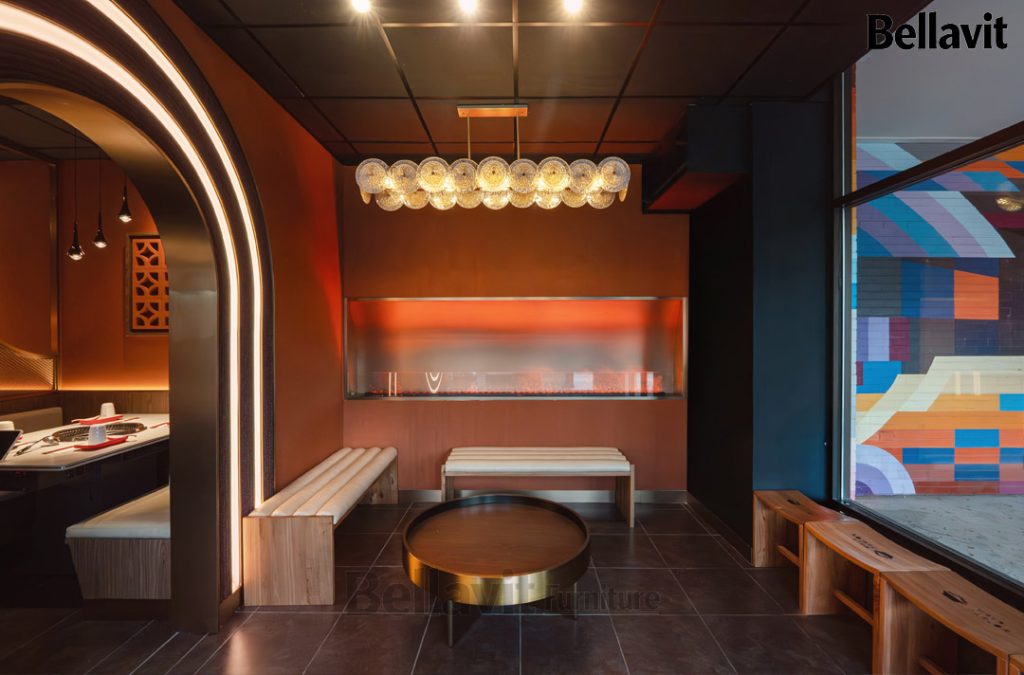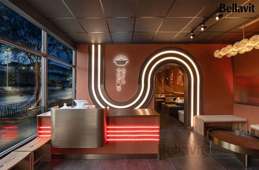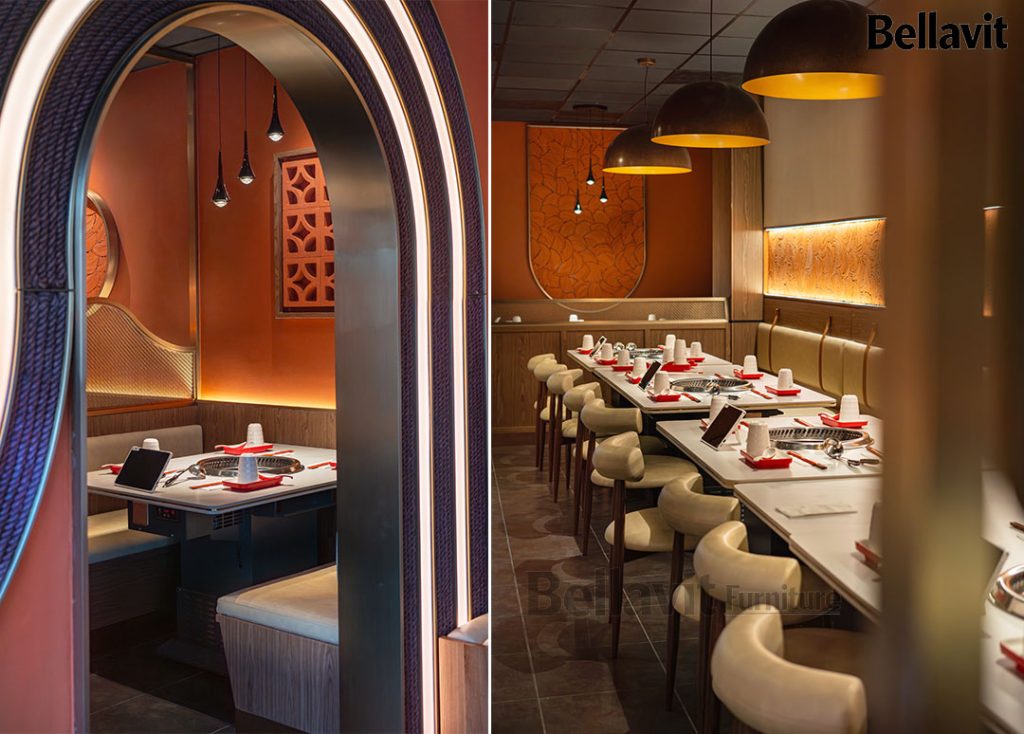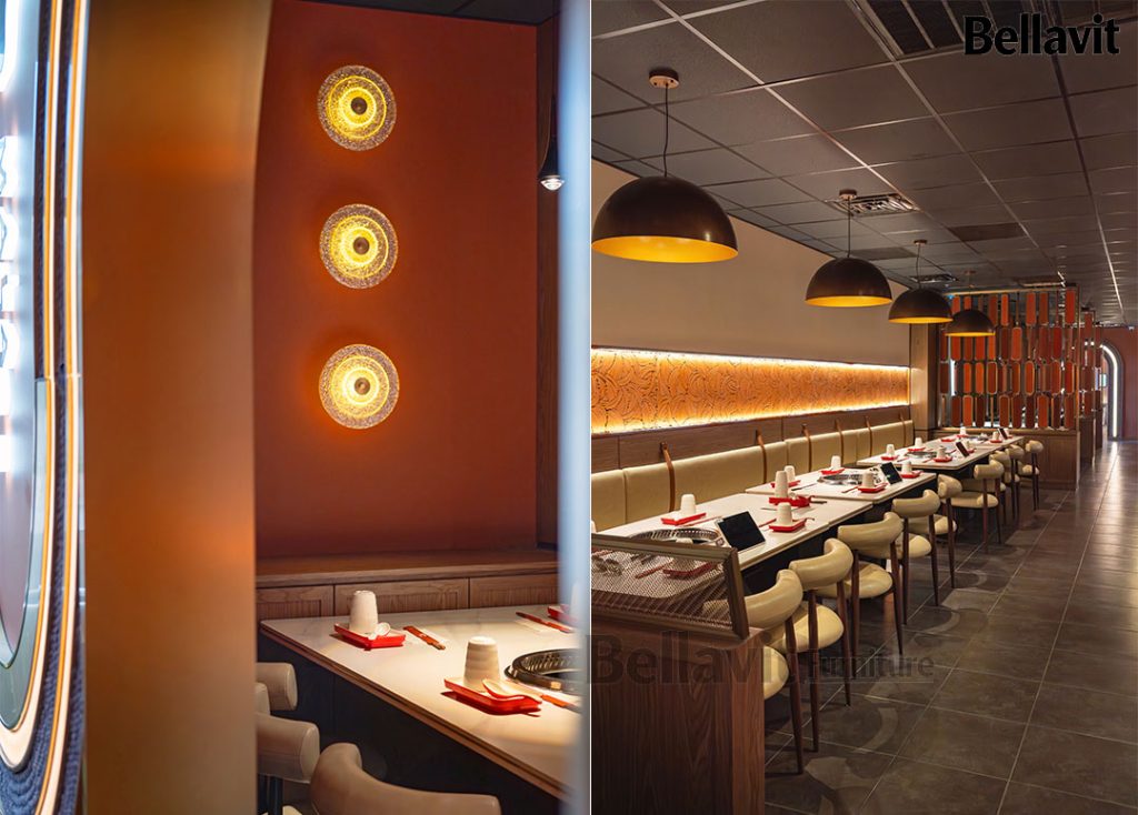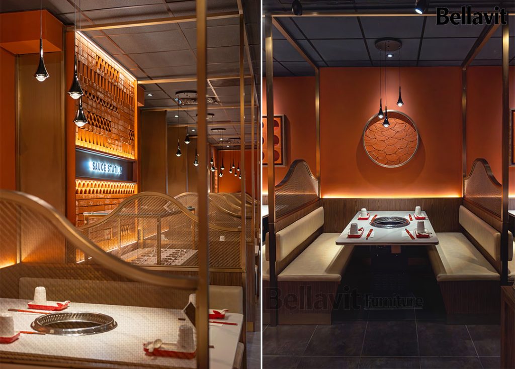 As a representative overseas catering furniture customization project of Bellavit, the “Mala Champagne” Hot Pot Restaurant was co-created with a U.S. design team. Centered on “Precise Adaptation, Personalized Fusion, and Efficient Delivery”, we oversaw the entire process from demand alignment, scheme refinement, prototyping to production and delivery. Seamlessly integrating the texture of LOFT retro industrial style with modern light luxury, the 280㎡ space not only meets the practical needs of hot pot catering but also becomes a iconic culinary landmark in Champaign, Illinois.