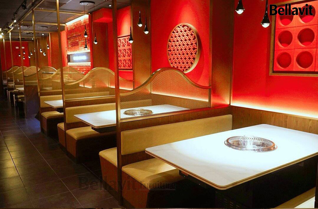 - Dining Table Customization: Precisely matched hot pot equipment parameters to confirm opening dimensions and table height, adopting double-layer rock slab with embedded gold wire technology to balance durability and visual texture;