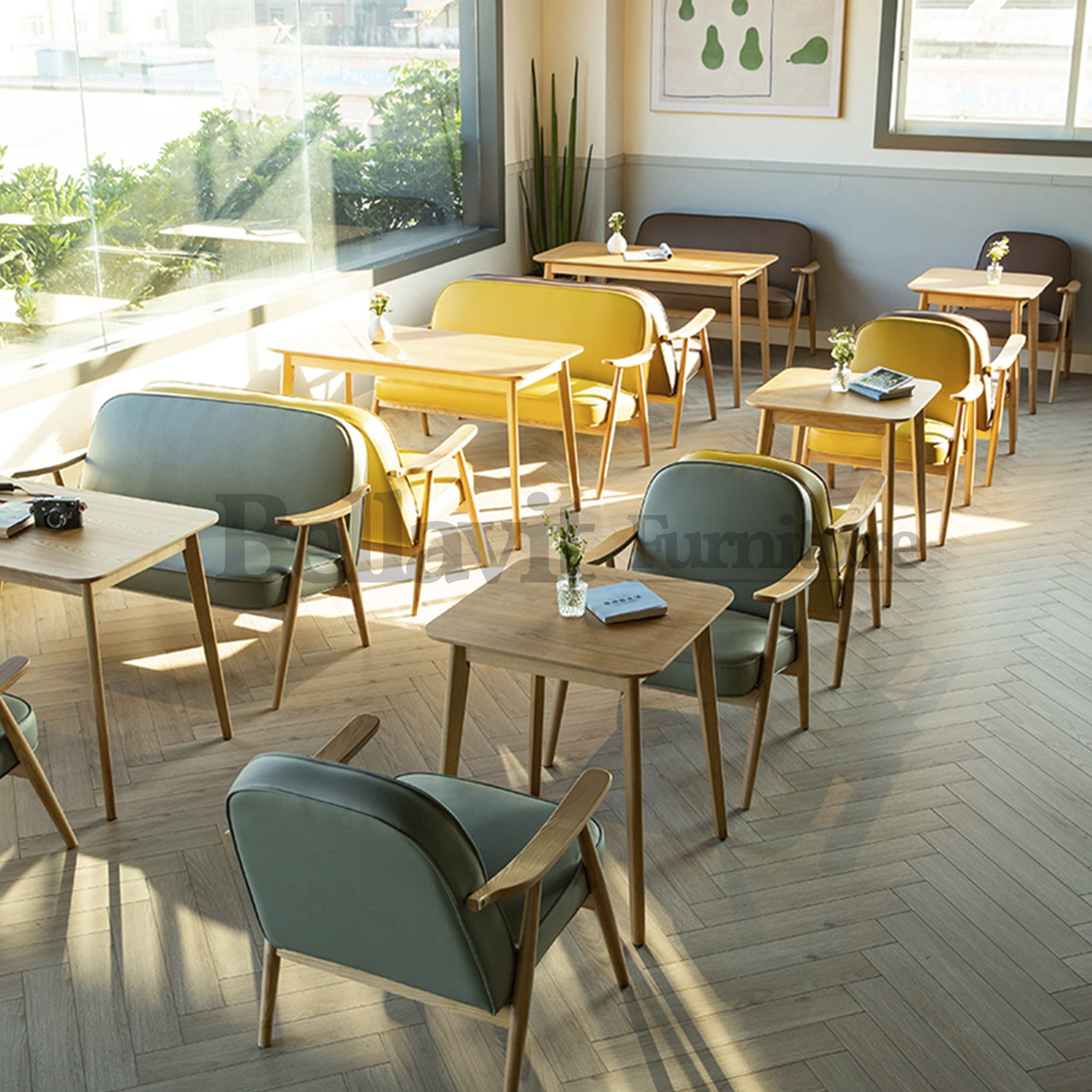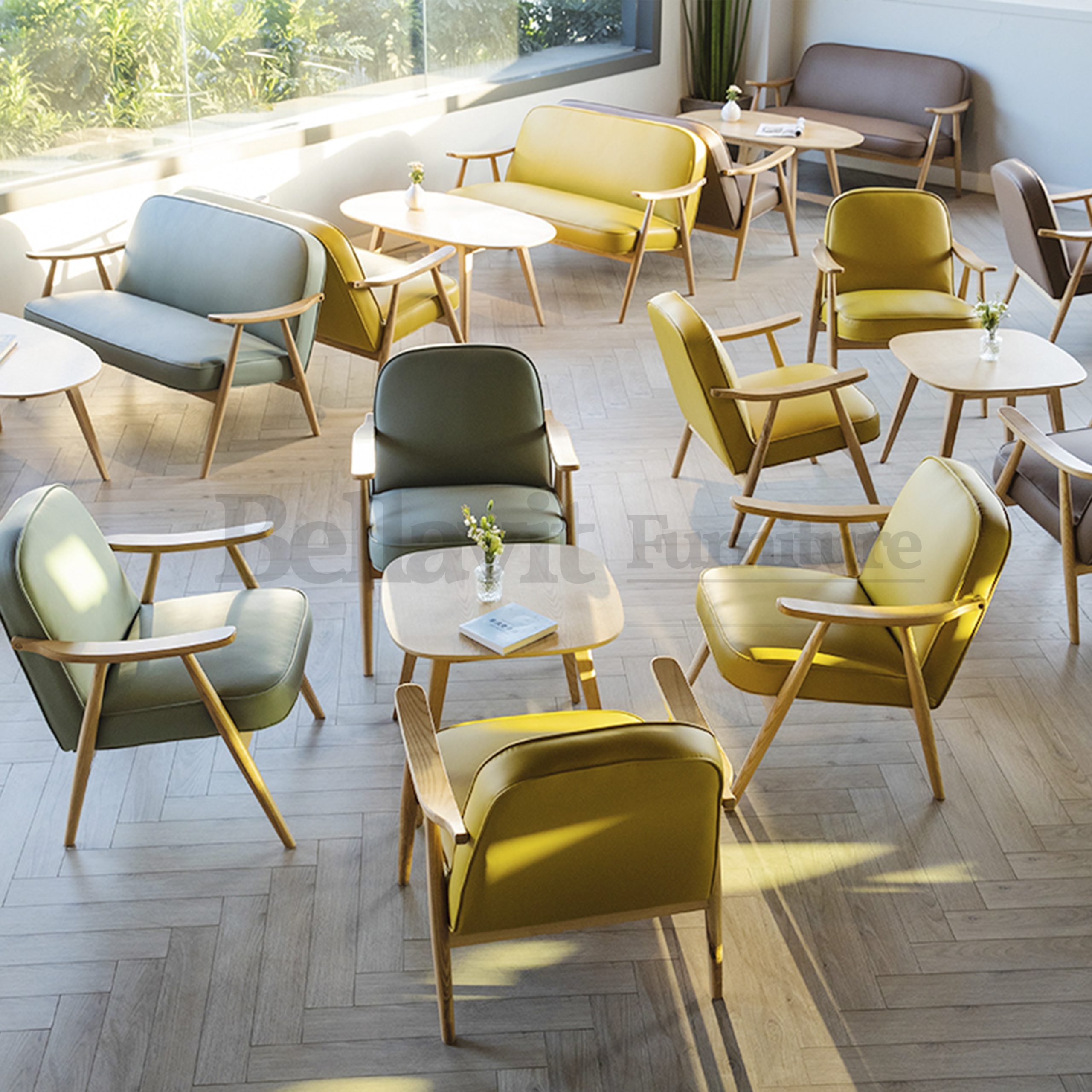 The Egg Sofa, with its rounded and lightweight silhouette, is a classic piece from Bellavita’s leisure coffee solid wood sofa collection. It can be paired with a taller dining table (approximately 70cm in height) for mealtime use, or equally well with a lower coffee table (around 55cm in height) for casual relaxation. Versatile and practical, it serves as an excellent choice whether placed in the coffee area or guest rooms of a hotel.